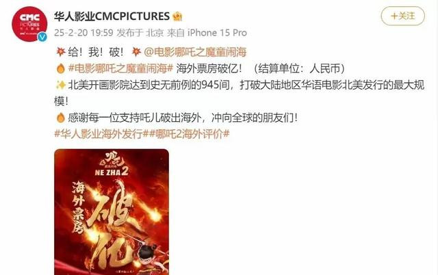狂揽127亿! 《哪吒2》血洗北美院线: 中国神话征服好莱坞